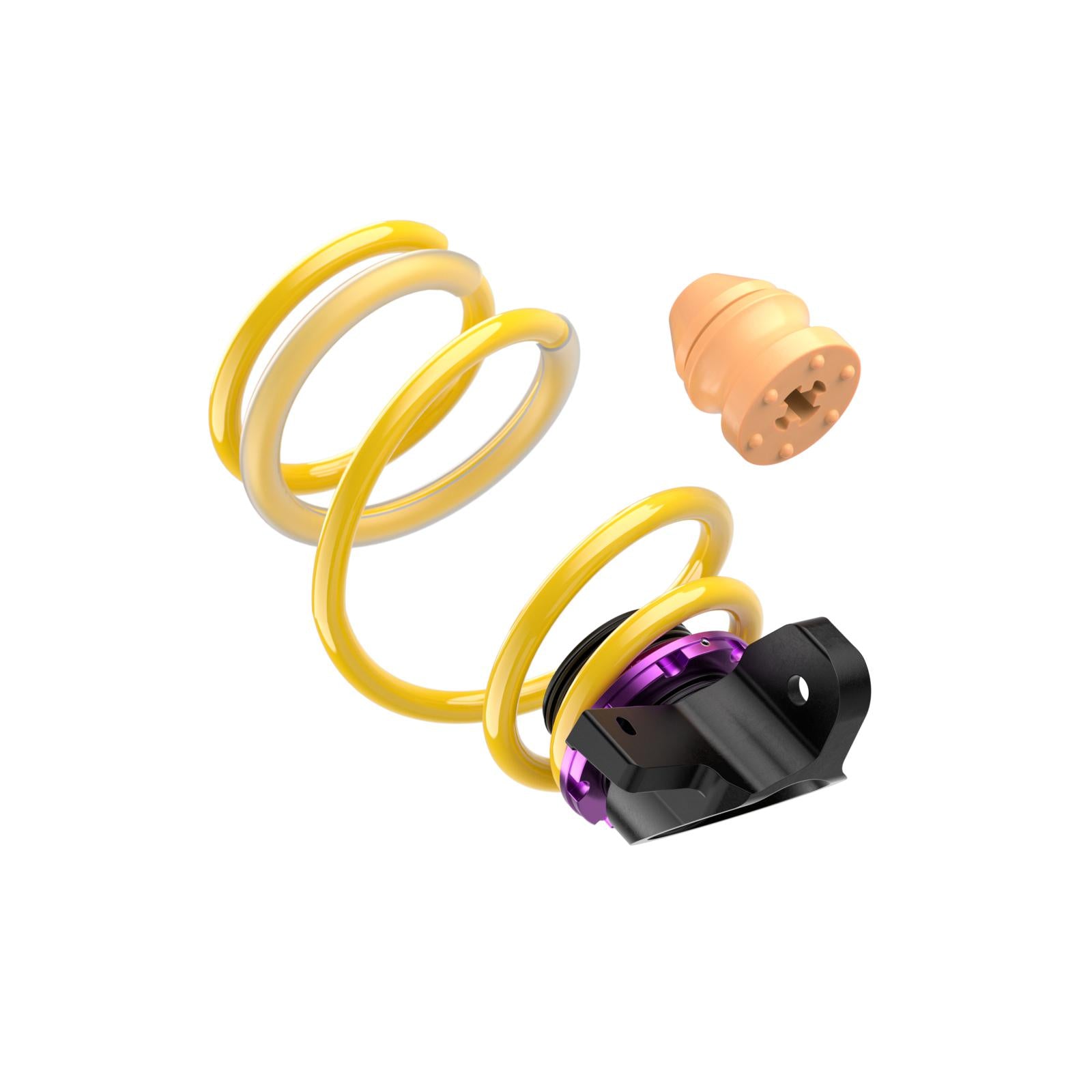 I likhet med et coilover-understell tillater også de høydejusterbare KW-fjærene en kontinuerlig senking innenfor et anstendig område. Dette er ikke mulig med konvensjonelle senkefjærer. Støvbeskyttelseselementene og fjærfestene som er inkludert i leveransen er alltid justert til maksimal mulig senking. Så med de høydejusterbare KW-fjærene kan man oppnå en sporty og harmonisk kjøreatferd uten at kjøredynamikken til ytelsesorienterte kjøretøy lider.