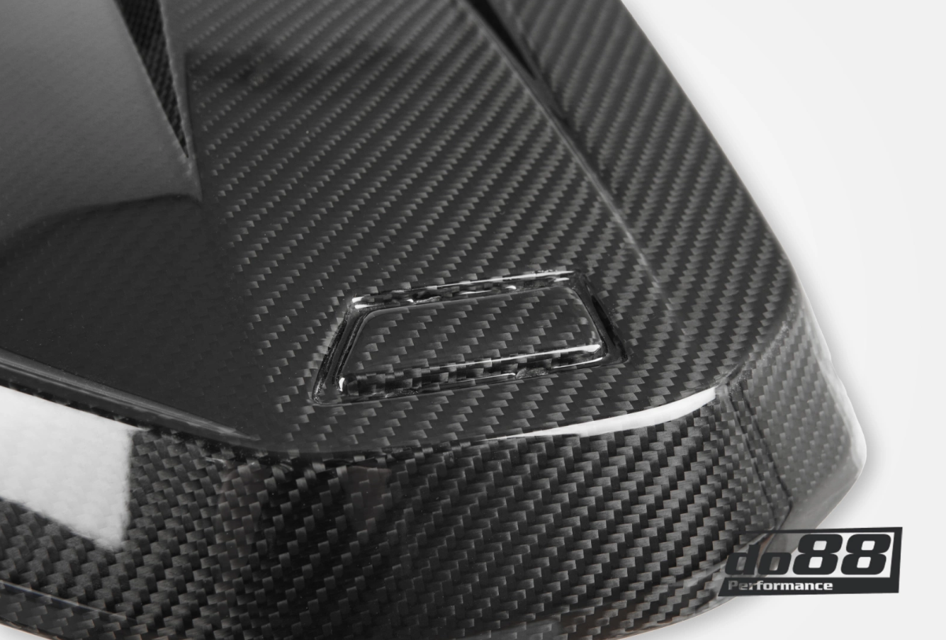 Det er laget av 2x2 twill vevd prepreg-karbon og overflatebehandlet med varmebestandig, blank klarlakk, noe som sikrer overlegen varmebestandighet og holdbarhet. UV-beskyttelse er lagt til for å forhindre gulning over tid.